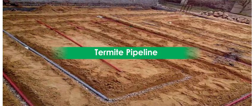 fixtures from termites attack. This placement of perforated pipes (made of UPVC) is done along the flooring just before laying of the sand bed/